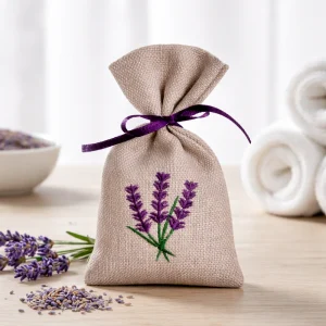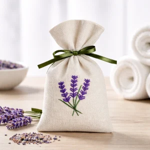 Omsy Lavanta Koku Kesesi Büzgülü – Lavanta Motifli Krem
